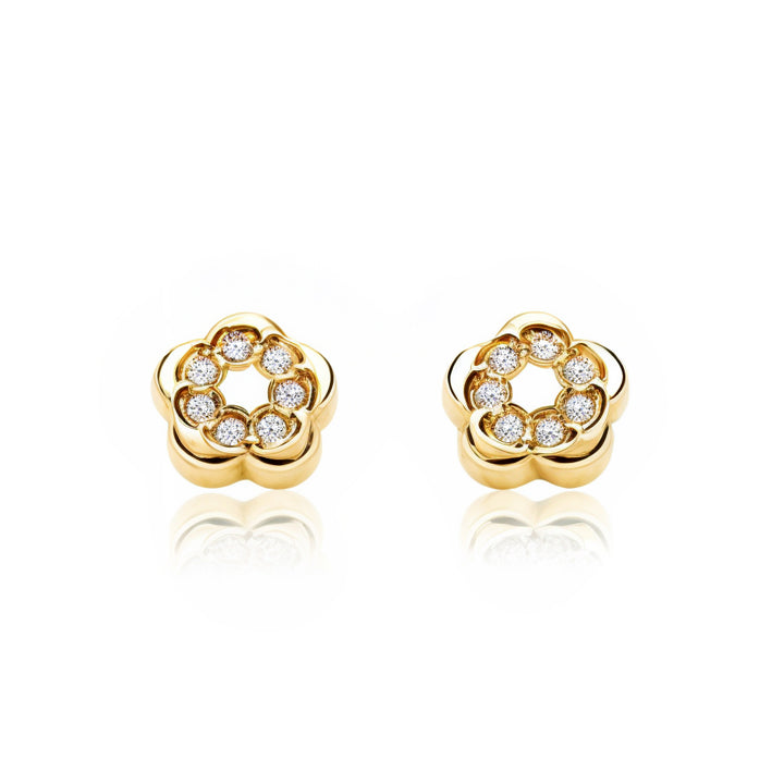 Blume Zirkon Kinder Baby Mädchen Ohrringe Gelbgold 9K
