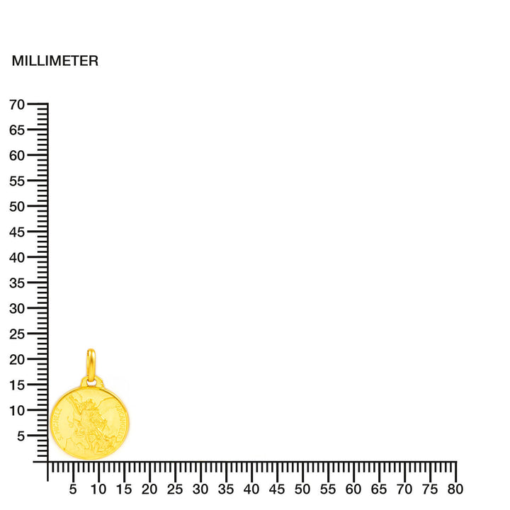Entdecken Sie die Eleganz und Symbolik unserer kleinen 18K Gelbgoldmedaille San Miguel, einem Accessoire, das klassisches Design mit der Wärme von Gelbgold kombiniert. Mit einer Größe von 14 x 14 mm ist diese Medaille perfekt, um sie jederzeit bei sich zu tragen, sei es als eleganter Anhänger oder als detaillierte Erinnerung an Glauben und Hoffnung.