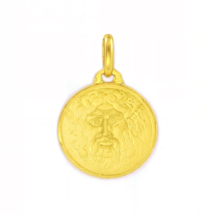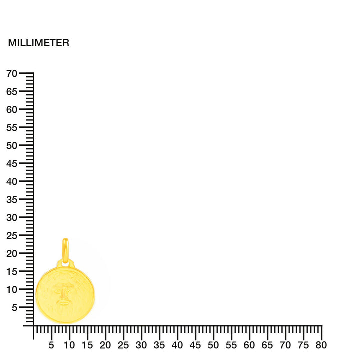 Vorsichtig aus 9 Karat Gelbgold gefertigt, zeichnet sich diese Medaille durch ihre ideale Größe von 16 mm Durchmesser aus, was sie bequem und vielseitig für jeden Anlass macht. Der Kontrast zwischen matten und glänzenden Texturen hebt die Details des Motivs hervor und schafft einen einzigartigen und eleganten visuellen Effekt. Es ist ein Schmuckstück, das für Frauen und Mädchen gedacht ist, die nach einem bedeutungsvollen und stilvollen Accessoire suchen.