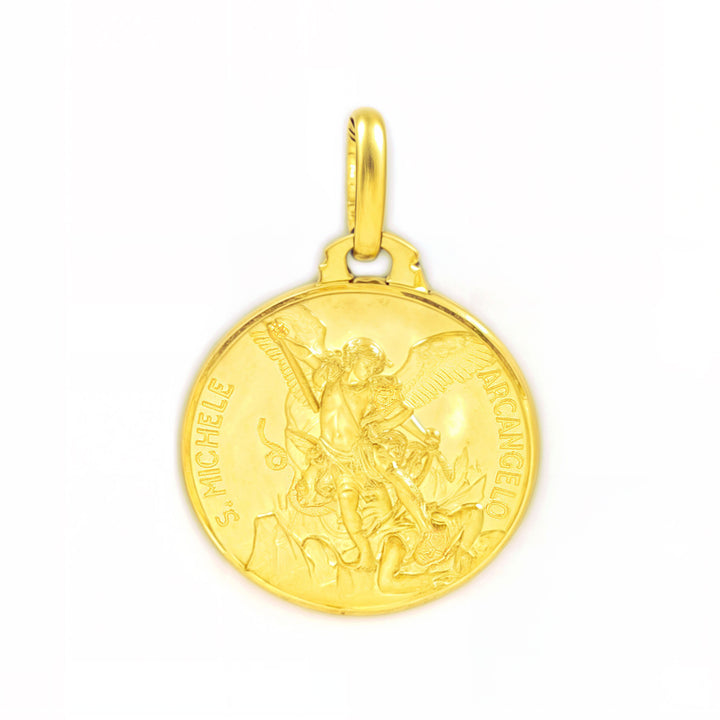 Entdecken Sie die Eleganz und die spirituelle Bedeutung der Medaille Mädchen Frau aus 18K Gelbgold, die rund gestaltet ist und das Bild von San Miguel zeigt. Dieses exklusive Stück von Mondepetit kombiniert eine matte und glänzende Oberfläche, die jedes Detail hervorhebt und jedem Look einen Hauch von Raffinesse verleiht. Ideal als besonderes Geschenk oder als Symbol für Schutz und Glauben, das Sie immer bei sich tragen können.