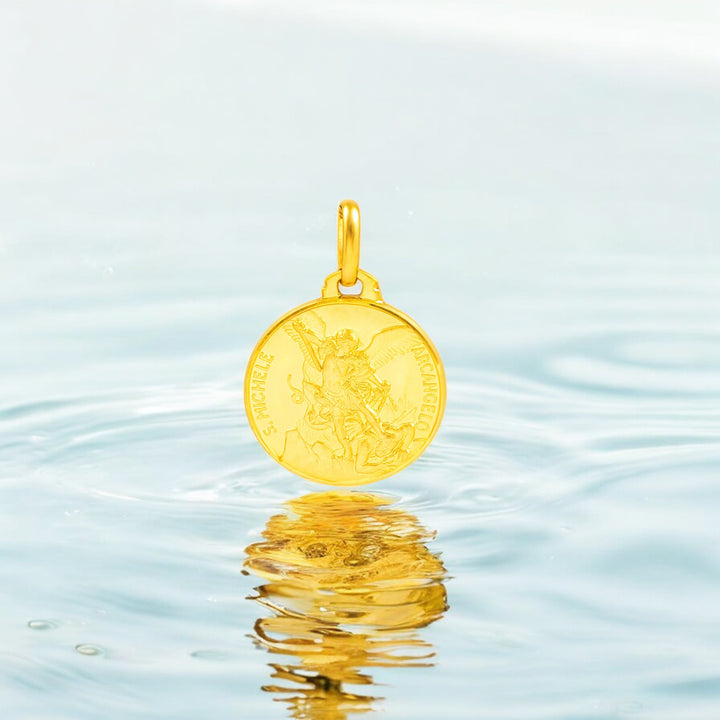 Hergestellt aus 18 Karat Gold, zeichnet sich diese Medaille durch ihre Qualität und Langlebigkeit aus und wird zu einem zeitlosen Accessoire, das Generationen überdauert. Ihr Design mit einem Durchmesser von 16 mm macht sie perfekt, um sie allein oder zusammen mit anderem Schmuck zu tragen, und passt sich jedem Stil und Anlass an.