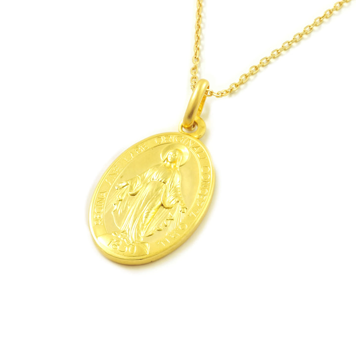 Entdecke die beeindruckende 9K Gelbgoldmedaille, die entworfen wurde, um deinen Stil und deine Spiritualität zu betonen. Mit einer mittleren Größe von 17 x 11 mm präsentiert diese Medaille eine matte und glänzende Oberfläche, die sie einzigartig und fesselnd macht. Ob als bedeutungsvolles Geschenk oder als persönliches Accessoire, dieses Schmuckstück ist perfekt für jeden Anlass und spiegelt die Schönheit des Glaubens wider.