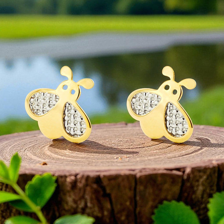 Damen & Kinder Ohrringe Bicolor 9K Gold Schmetterling Glanz und Textur