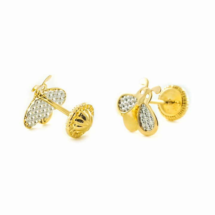 Pendientes Niña Mujer oro Bicolor 9K Mariposa Brillo y Textura