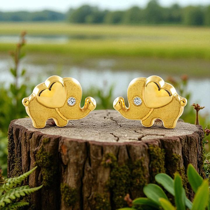 Damen & Kinder Ohrringe Elefant Zirkonia Matt und Glanz Gelbgold 9K