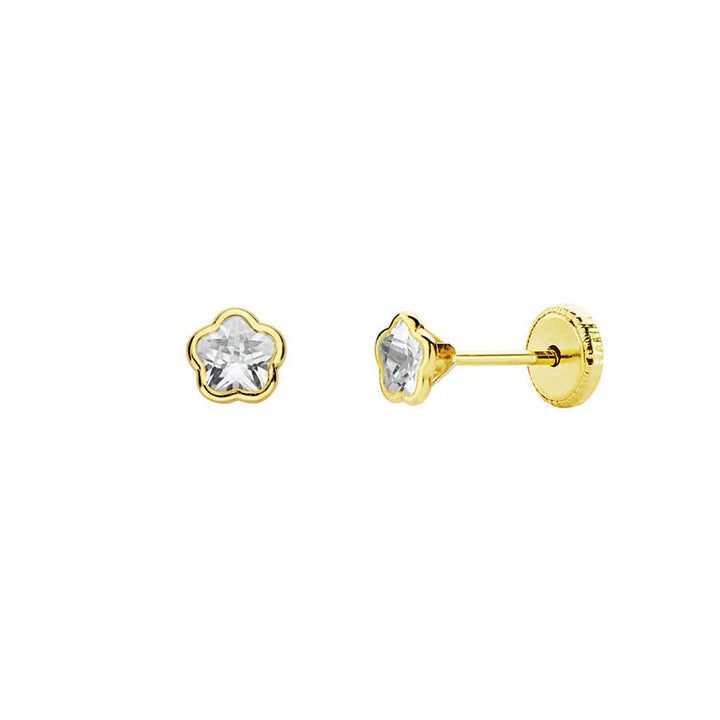 Die Kombination aus Gelbgold mit dem glänzenden Finish und dem Zirkonia verleiht einen eleganten und zeitlosen Stil, ideal für die Kleinsten. Ihr blumenförmiges Design ist fröhlich und feminin, gedacht, um jeden Moment mit einem besonderen Glanz zu begleiten.