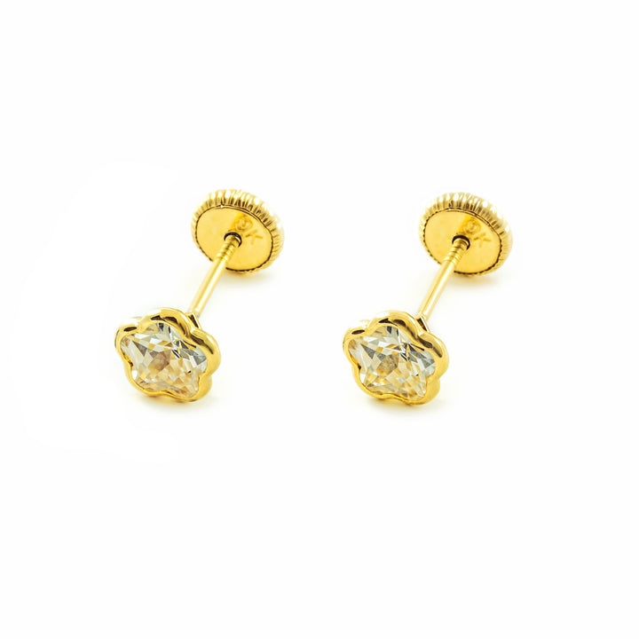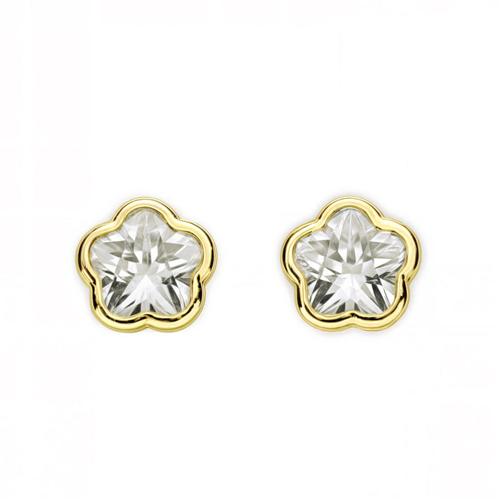 Damen & Kinder Ohrringe Gelbgold 9K Blume mit Zirkonia Glanz