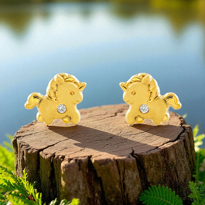 Damen & Kinder Ohrringe Gelbgold 9K Einhorn Zirkonia Matt und Glanz