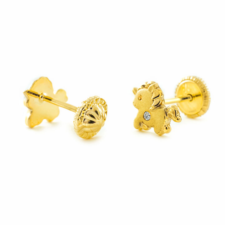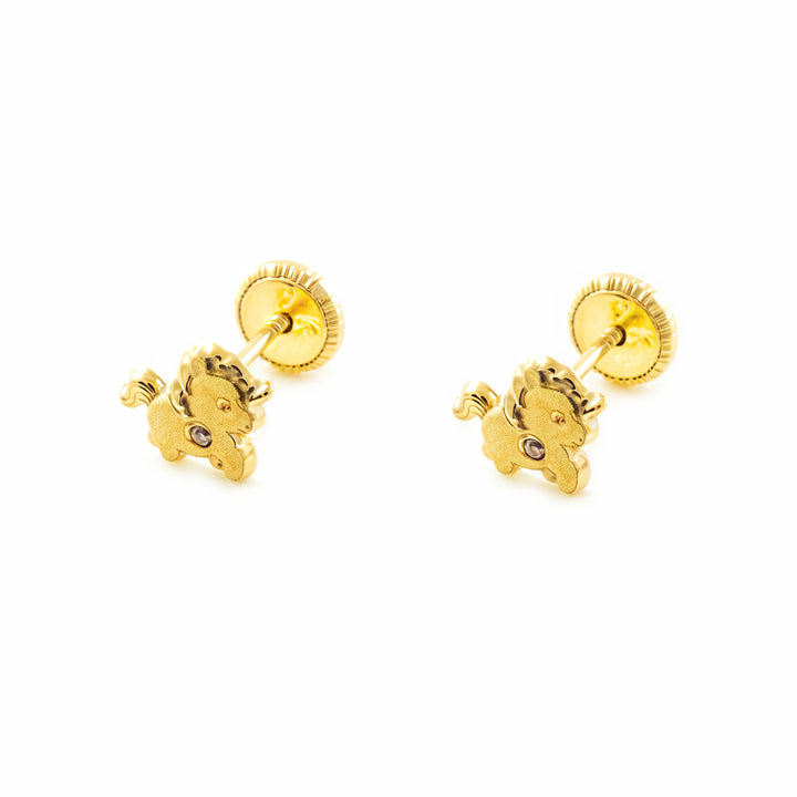 Pendientes Niña oro Amarillo 9K Unicornio Piedra Circonita Mate y Brillo