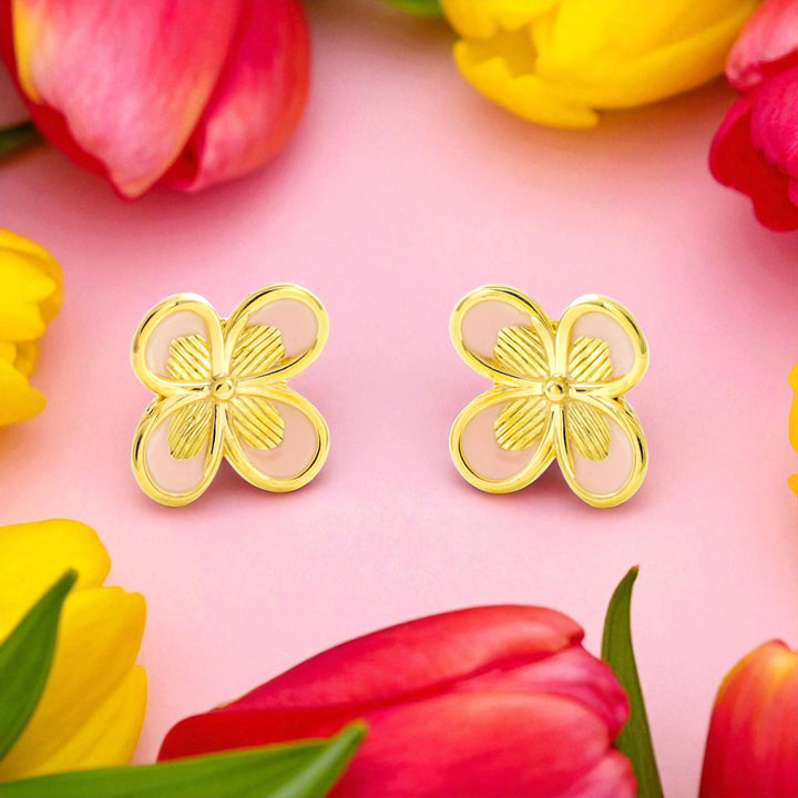 Damen & Kinder Ohrringe Gelbgold 9K Kleeblatt Emaille Rosa Glanz und Textur