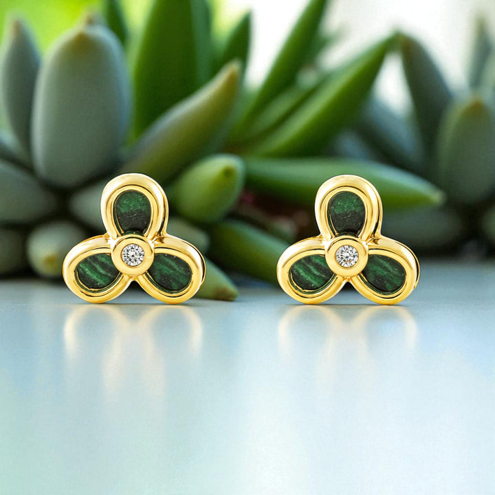 Damen & Kinder Ohrringe Gelbgold 9K Kleeblatt Zirkonia Glanz