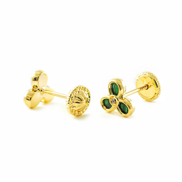 Pendientes oro Amarillo 9K Trébol Piedra Circonita Brillo