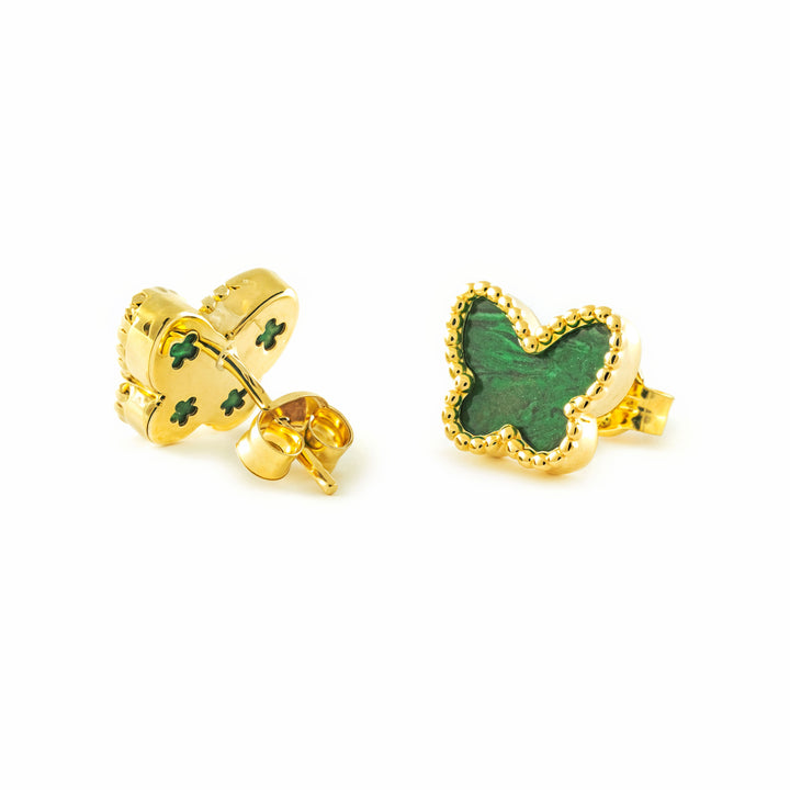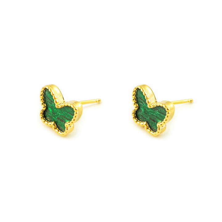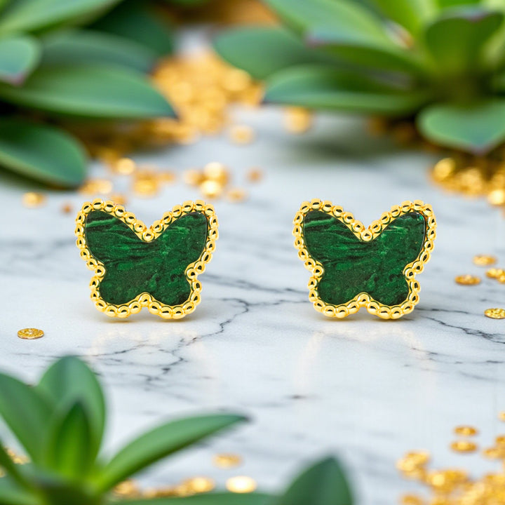 Pendientes Mujer oro Amarillo 9K Mariposa Piedra Malaquita Verde Brillo y Textura