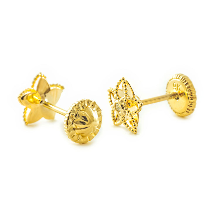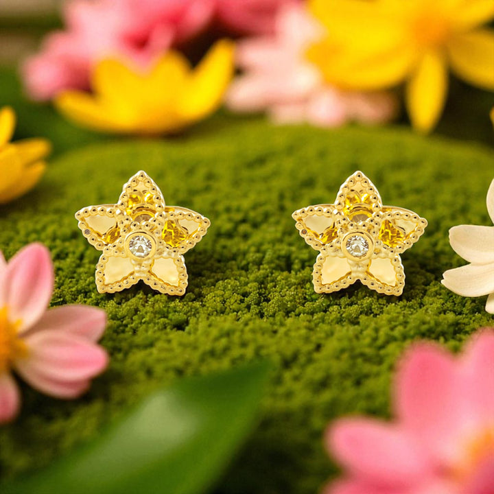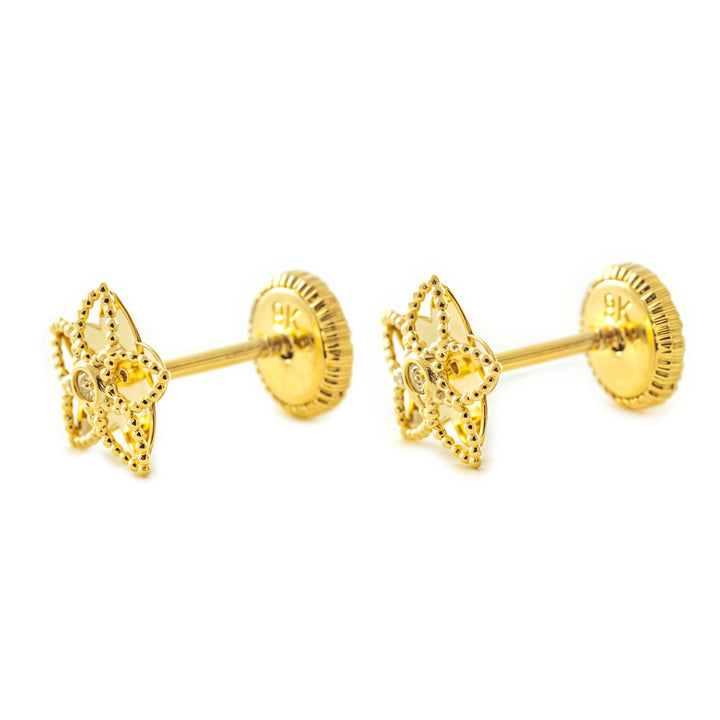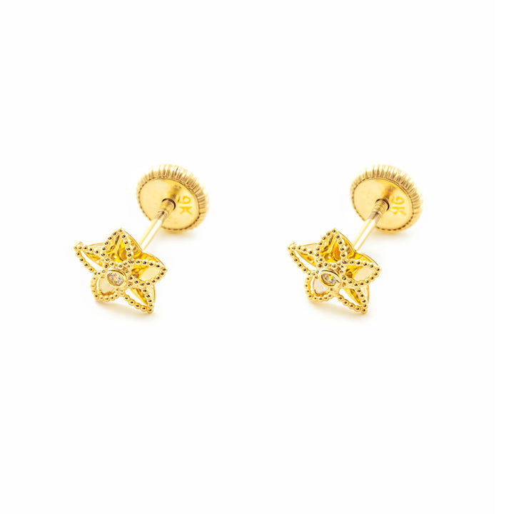Entdecke die Zartheit und den Charme der Mädchenohrringe aus 9K Gelbgold in Sternform. Dieses exklusive Design von Mondepetit kombiniert die Eleganz des Goldes mit dem subtilen Glanz der Zirkonia und schafft ein perfektes Schmuckstück für besondere Anlässe oder den Alltag. Das glänzende und strukturierte Finish verleiht einen modernen und eleganten Touch, ideal um jeden Kinderlook zu unterstreichen.