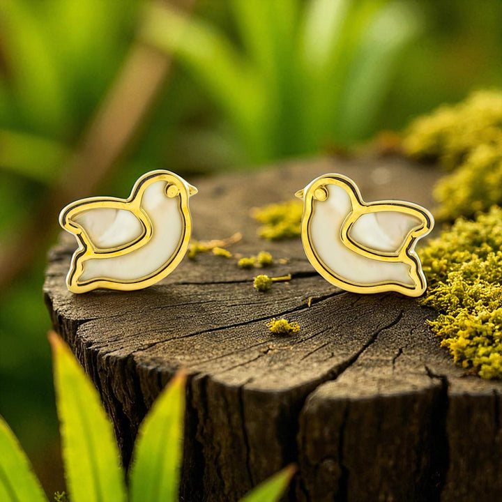 Das Perlmutt, auch bekannt als Nacre, hebt die natürliche Schönheit des Schmucks hervor und bringt Licht ins Gesicht. Das 9K Gelbgold garantiert Langlebigkeit und Widerstandsfähigkeit, während das Vogeldesign Freiheit und Freude symbolisiert, wodurch diese Ohrringe ein perfektes Geschenk für Mädchen und Frauen jeden Alters sind.