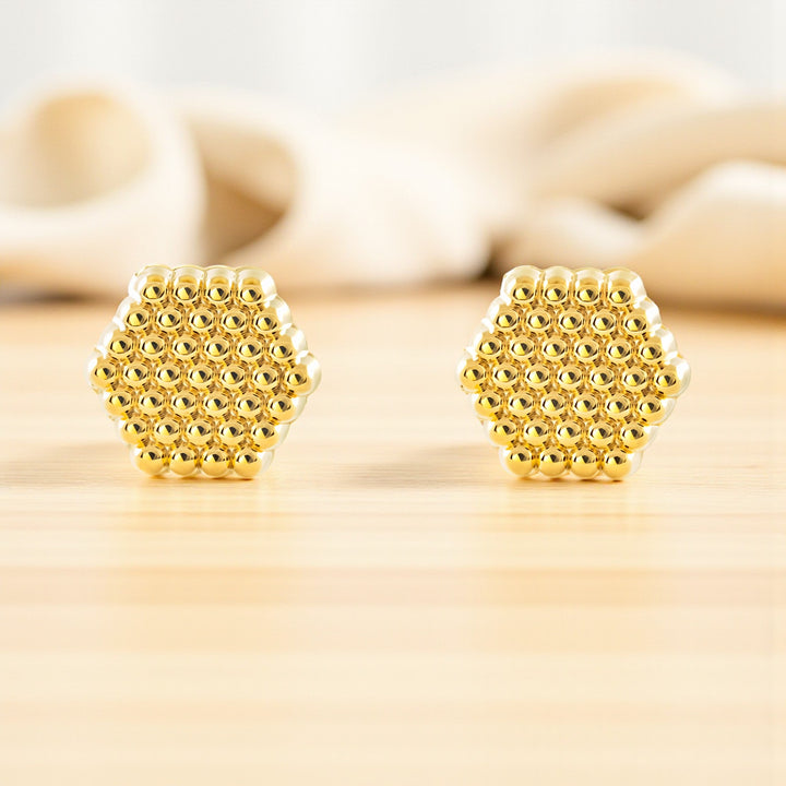 Damen & Kinder Ohrringe Hexagon Glanz Gelbgold 9K