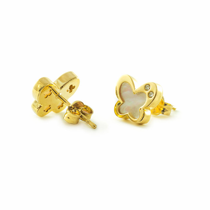 Damen & Kinder Ohrringe Mariposa Muschel Perlmutt Weiß Gelbgold 9K