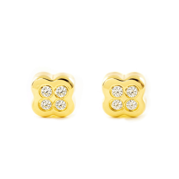Entdecken Sie die Eleganz und den Charme unserer Baby Ohrringe aus 18K Gelbgold mit Zirkonia Blumen Glanz. Speziell für die Kleinsten entworfen, kombinieren diese Ohrringe die Zartheit von hochwertigem Gelbgold mit einem bezaubernden Blumendesign. Jedes Stück wird mit Liebe zum Detail gefertigt, um sicherzustellen, dass Ihr Baby bei jeder Gelegenheit strahlt.
