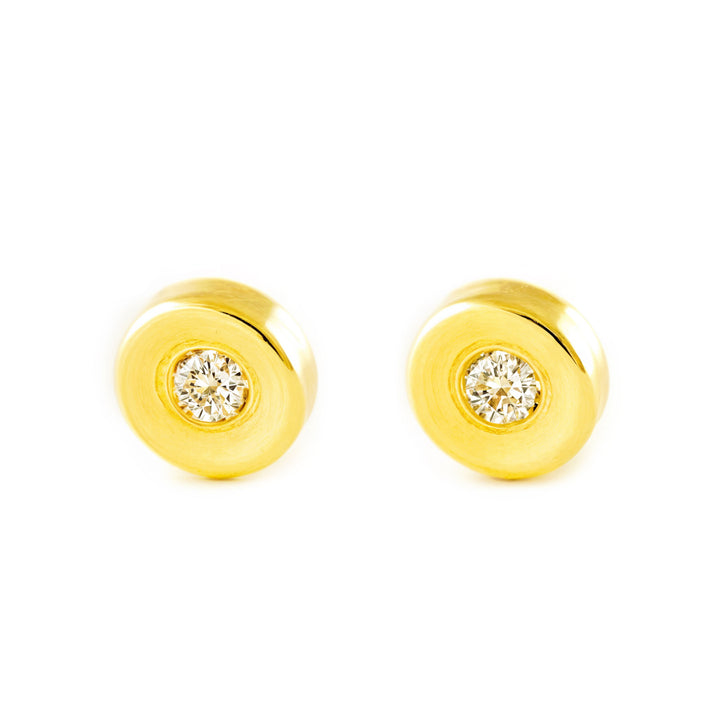 Entdecken Sie die Eleganz und den Charme unserer Baby Ohrringe aus 18K Gelbgold mit runden Zirkonia Glanz. Speziell für die Kleinsten entworfen, sind diese Ohrringe die perfekte Kombination aus Stil und Sicherheit. Das 18-karätige Gelbgold garantiert eine außergewöhnliche Qualität, während das runde Design einen klassischen und zeitlosen Touch verleiht.