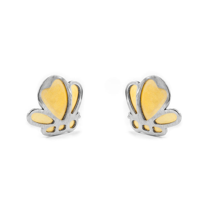 Entdecken Sie die Eleganz und den Charme unserer Mädchen Ohrringe aus 18K Bicolor Gold, schlicht mit mattem und glänzendem Schmetterlingsdesign. Speziell für die Kleinen entworfen, kombinieren diese Ohrringe modernen Stil mit einem klassischen Touch, perfekt für jeden Anlass. Der Schmetterling, ein Symbol für Transformation und Schönheit, fügt ein bezauberndes Detail hinzu, das Ihr Mädchen besonders fühlen lässt.